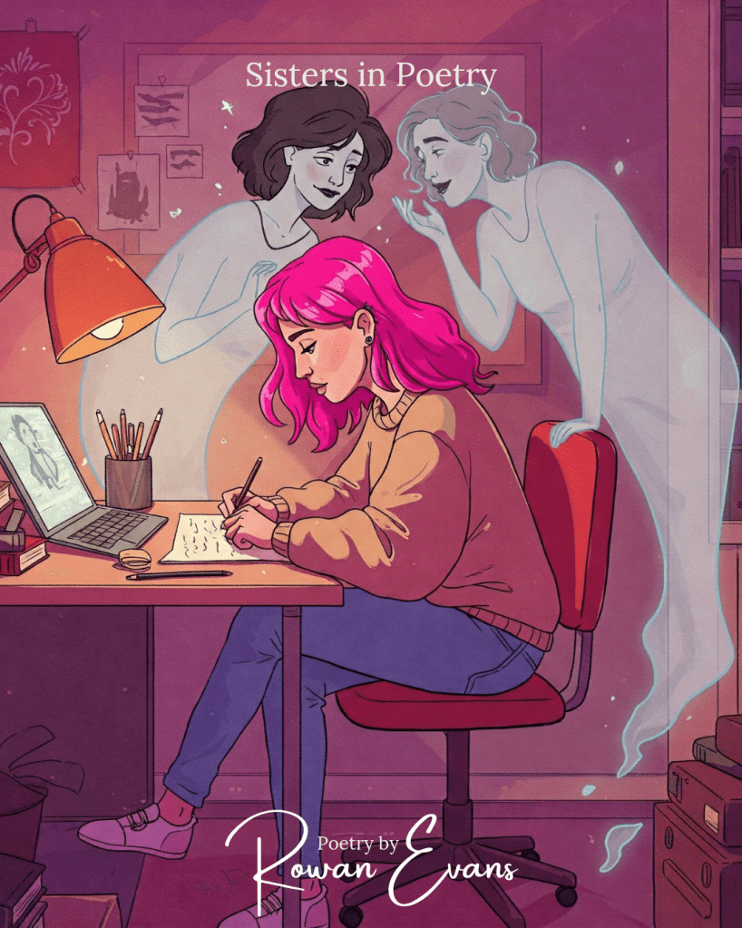 Their shadows cast long across the ink-stained page, Where my own verses join in their dark rage. We are sisters in poetry, bound by pain and song, In the dark gothic echo where our voices belong.