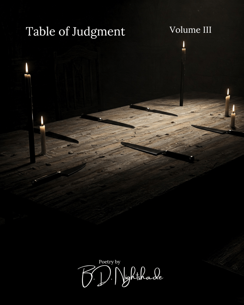 Vengeance is a complex, deeply personal concept. In Table of Judgment: Volume III, I explore the idea of retribution—not as a simple act of revenge, but as a reckoning for those who have inflicted harm, whether through direct action or silent complicity. These figures are not faceless villains, but representations of broader societal ills: the abusers, the enablers, the silent bystanders. The blade of justice is sharp, and the flames of truth burn without mercy.